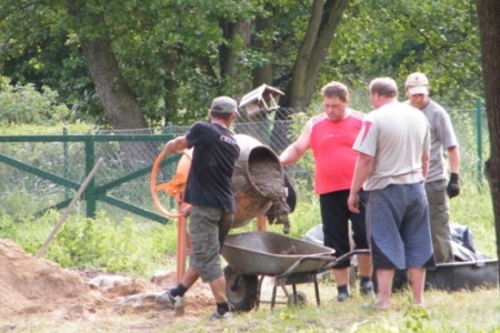 Po wywiezieniu sterty gałęzi przez sołtysa Duchowa pana Jerzego Nawrockiego stały zespół pracowitych pań z Rudy Milickiej jak zwykle przy pracy. Natomiast sześciu panów z Rudy z pomocą sąsiadów z Grabownicy, 29 maja rozpoczęli prace przy montażu siatki ogrodzeniowej wzdłuż boiska od strony rowu z wodą – będzie to zabezpieczenie przed wpadaniem piłki do wody. Słupki zespawał pan Stanisławski. Prace wymagały nie tylko transportu ale i sporo wysiłku z użyciem sprzętu. Panowie poradzili sobie bardzo dobrze. Jeśli potrzebna jest mobilizacja to nie brak chętnych do prac a cieszy nas również to, że mieszkańcy wsi sąsiednich chętni są do pomocy – nic bardziej nie integruje jak wspólna praca.