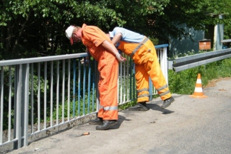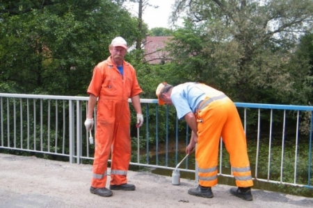 Balustrady mostu przylegającego do drewnianego jazu zostały na nowo pomalowane. Faktycznie po wielu latach most wyglądał jak z innej – uboższej – epoki.