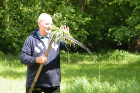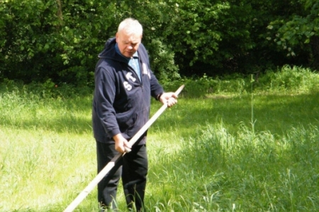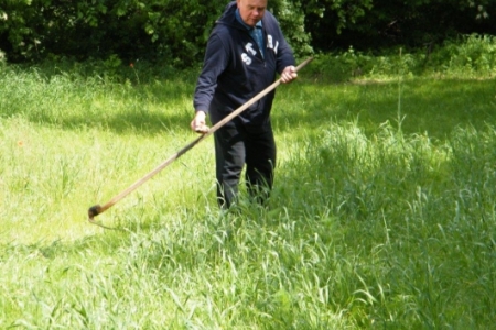 W Rudzie Milickiej tę zanikającą sztukę ostatnio mogliśmy podpatrzeć w wykonaniu pana Henryka Kołodziejczyka. Może poprosimy o lekcje koszenia? Myślę, że chętni znaleźliby się bo jest to sztuka ginąca. Pani Regina Kołodziejczyk natomiast dba o nasze młode roślinki – plewi, zbiera skoszoną trawę. Dzięki Państwu Kołodziejczykom nasz teren rekreacyjny jest zadbany, a medal za aktywność należy się wszystkim mieszkańcom starego młyna.