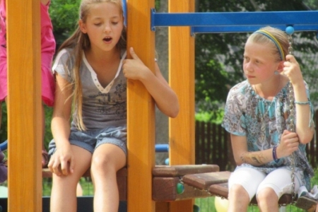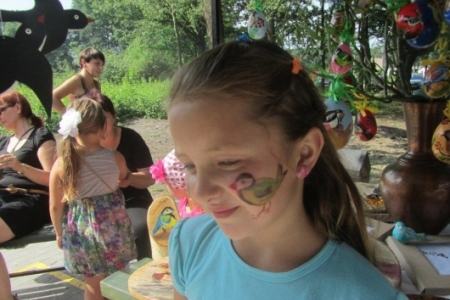 Nasze dzieci były radosne, chętnie uczestniczyły we wszystkich zabawach, śpiewały (następny raz przygotujemy nagłośnienie), malowały, bawiły się piłkami malowanymi w ptaki, które dostały w prezencie, łowiły ryby i chciały mieć pomalowane rączki i buzie a ich życzenia spełniała pani Joanna. Pani Zosia z Fundacji przygotowała wiele gier, zabaw i nie było dziecka, które nie chciałoby w tych zabawach uczestniczyć. W niebo poleciały balony i tak został otwarty dla dzieci plac zabaw w Rudzie Milickiej