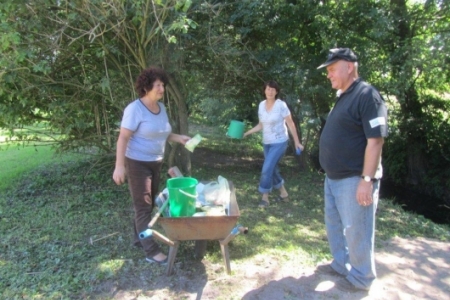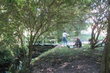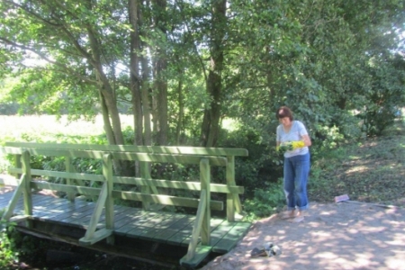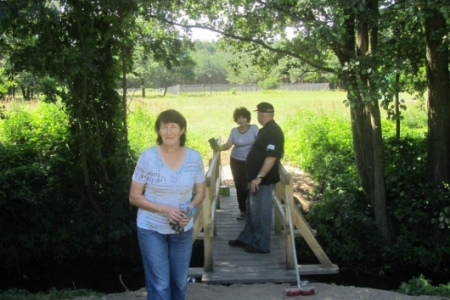 To tekst starej ludowej piosenki. Pokazywaliśmy nasze mostki w Rudzie Milickiej w pliku „Zielony mosteczek” i tam możemy zobaczyć jak dużo jest u nas mostków a wszystkie interesujące – jedne funkcjonalne, inne tajemniczo schowane wśród zieleni, są też takie, które będąc malowniczymi wymagają pilnego remontu i zabytkowy związany z jazem drewnianym. Pochwaliliśmy się również, że do kolekcji mostków dodaliśmy jeszcze jeden łączący oba tereny integracyjne: boisko do piłki nożnej i plac rekreacyjny z boiskami i placem zabaw oraz zielonym miejscem do wypoczynku. Ten ostatni wykonany we własnym zakresie przez naszego stolarza i zamontowany przez mieszkańców. Dzisiaj ten mostek został pomalowany na zielono pod wpływem tej starej piosenki i teraz będziemy go tak nazywać „Zielony mosteczek” – sami go „wyrychtowaliśmy” i świetnie wkomponował się w otoczenie.