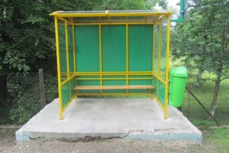 Bylibyśmy zadowoleni z nowej konstrukcji, gdyby nie to, że wiata jest węższa od poprzedniej i w związku z tym zrobiła się przeszło półmetrowa przerwa pomiędzy odrodzeniem a ścianami wiaty, ponieważ wszystko razem jest umieszczone na dość wysokim cokole, za którym jest znaczny spadek – miejsce staje się niebezpieczne dla dzieci, które jak sami wiemy lubią sprawdzić czy da się skoczyć. Oczywiście, że sami postaramy się to zabezpieczyć, ale na moją uwagę po zakończonej pracy panowie montujący powiedzieli, że nie mają tego w zakresie prac co sprawiało wrażenie ograniczenia w przydziale rozsądku. Prosiłam również o wyrównanie cokołu ale okazało się, że to też nie było „w przydziale” i tak beton został na krawędziach poszarpany. I to jest ta łyżka dziegciu i dowód na to, że ładną rzecz można zepsuć już na samym początku. Wiatę będziemy przenosić po wyrównaniu zasypanego rowu, gdyż miejsce przy głównej ulicy przy domach jest bezpieczniejsze dla dzieci i wtedy zadbamy o wszystkie szczegóły.