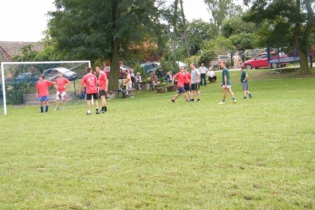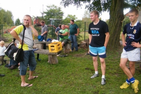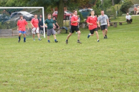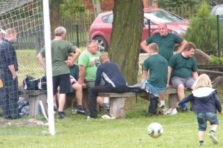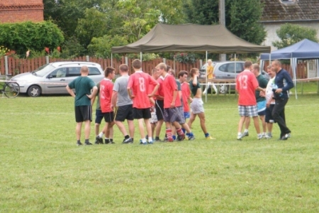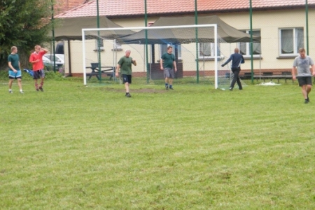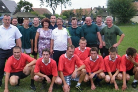 Mieszkańcy Rudy Milickiej zostali zaproszeni nie tylko na same uroczystości ale też do uczestnictwa w meczu piłki nożnej. Duchowo to nasi sąsiedzi „przez pole” – bywają na niedzielnych meczach rozgrywanych na naszym boisku i dlatego z przyjemnością nasi panowie przyjęli zaproszenie na wspólny mecz. Drużyna Duchowa była w koszulkach czerwonych a nasza w zielonych. Naszym zawodnikom kibicowały rodziny i znajomi no i sołtys pani Krystyna Patalas. Sołtys Duchowa pan Jerzy Nowacki dodatkowo pełnił funkcję sędziego i nikt nie miał powodu narzekać. No a WYNIK?! Sprawiedliwy remis 1 do 1. Ciekawe czy na meczu rewanżowym w Rudzie Milickiej sędziować będzie pani Sołtys?