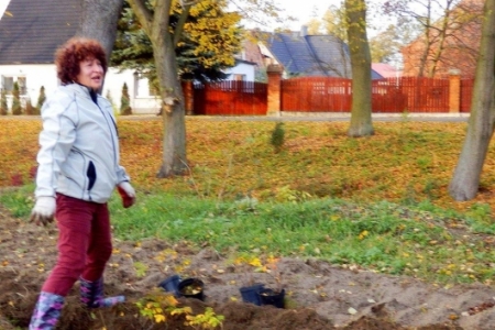 Mieliśmy zaplanowane sadzenie roślin w ramach programu „Krzewy dla ptaków i urody wsi” do 27 października, ale ponieważ przychodziło dużo osób to udało się zakończyć sadzenie już w piątek 26 października – i całe szczęście – był to ostatni dzień pięknej jesieni.