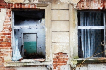Nie mamy żadnych zdjęć z okresu kiedy budynek był jeszcze zamieszkały, za to doczekał się dokumentacji fotograficznej jak już powoli umierał.
