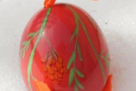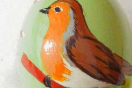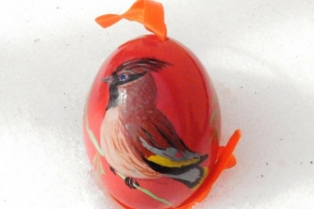 Zdjęcie nr 17: rudzik malowany na dużym szklanym jaju w dawnej fabryce bombek przez p. J. Tarkę