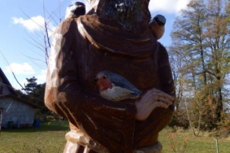 To co szczególnie przyciągnęło uwagę pani Agaty Combik do naszej wsi to figury św. Franciszka wkomponowane w dwa witacze. Figury przedstawiające św. Franciszka wybraliśmy ze względy na charakter naszej wsi jako wioski ptasiej. Witacza stanęły w 2012 r. jako realizacja zadania publicznego w ramach inicjatyw lokalnych. Teraz wizerunki św. Franciszka stały się bardzo popularne odkąd imię to przyjął papież. Na większości obrazów świętego otaczają ptaki i to było inspiracją dla naszego wyboru, bo przecież Ruda Milicka to Ptasia Kraina a przy tym św. Franciszek jest patronem ekologów. Piękne rzeźby do witaczy wykonał pan Jerzy Zakowicz. No i przez te witacze budzimy coraz większe zainteresowanie. Bardzo nam się podobał tytuł artykułu w Gościu Niedzielnym: „Wioska odlotowa”. W artykule tym również zaprezentowano pisanki pani Joanny.