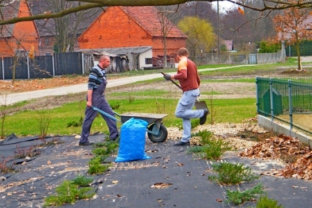 Dwa duże plakaty obwieszczały, że wiosenne porządki czas zacząć. Jak zwykle po późnej jesieni i długiej zimie nagromadziło się sporo zeschłych liści, połamanych gałęzi, trzeba było oczyścić posadzone jesienią rośliny i wykonać najcięższą pracę – rozrzucić, pod płożącymi roślinami w kilku miejscach placu rekreacyjnego, otoczaki.