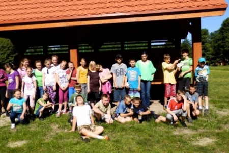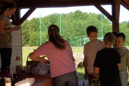 Pani Małgosia Pilipa – wychowawczyni klasy V b wiedziała, że dzieci będą miały dobrą i bezpieczną zabawę i dlatego na wycieczkę dla swojej klasy wybrała nasz plac rekreacyjno – sportowy. Było ognisko i pieczenie kiełbasek, zabawy na boiskach do piłki nożnej i do kosza. Śmiech jak ten dym z ogniska roznosił się nad wiatami.