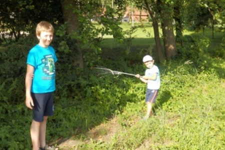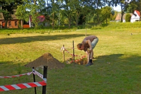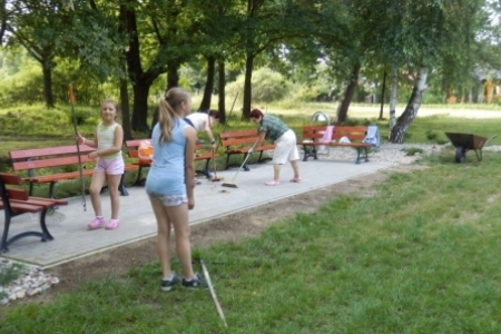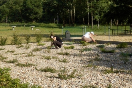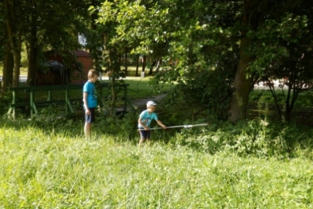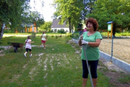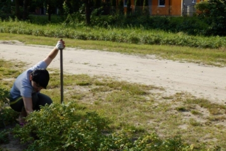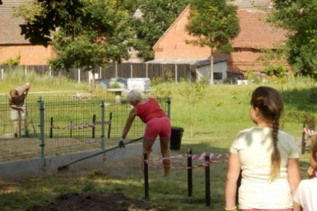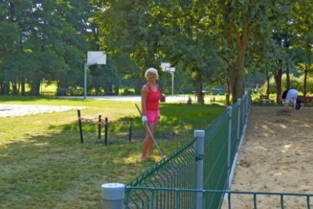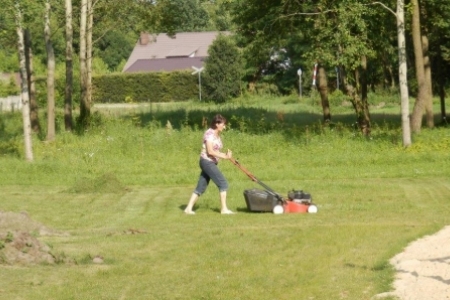 17 lipca znowu plakatem zaprosiła wszystkich pani Sołtys by ujarzmić trawę i chwasty, które są szybsze od nas. Panowie traktorkami skosili boisko i plac pod wiatami, pani Regina z domu „Pod modrą sikorka”, spalinową kosiarką dzielnie kosiła trawę przy placu zabaw. Frekwencja tym razem była większa niż zwykle, bo to sezon urlopowy i pewnie więcej czasu na dodatkowe zajęcia. Dziewczynki ze Stawna i Emilek z domu „Pod Bączkiem” jak zwykle pełni zapału do pracy. Jeden pan – nasz lider przy kopaniu rowów, przygotowywał następny otwór pod siłownię. Prace trwały trzy godziny ale za to jak pięknie wyglądało później nasze Centrum rekreacyjno – sportowe!