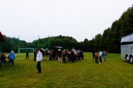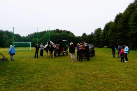 Wszyscy chwalą nasz zadbany plac i jeśli tylko znajdą wolne miejsce korzystają z rozlicznych atrakcji. Rano w sobotę przyjechała autobusem wycieczka integracyjna i spora ilość osób na wózkach bez większych kłopotów mogła korzystać z odpoczynku pod wiatami a dodatkową atrakcją były przejażdżki wozami konnymi. Przed szesnastą zaczęły schodzić się nasze dzieci na zapowiadany piknik z okazji zakończenia wakacji a na placu sportowym pojawiło się wielu turystów na naszych boiskach i siłowniach zewnętrznych. Jak zwykle oblegany był plac zabaw dla dzieci.