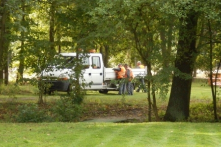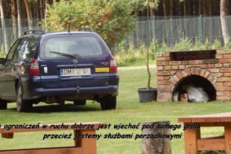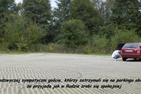 Wszystkim mieszkańcom zależałoby na tym żeby jakoś przekonać przyjeżdżających do nas by zatrzymali się na tym parkingu, ale nawet organizatorzy imprezy gminnej uznali, że od parkingu do Rudy jest okropnie duża odległość i lepiej na czas imprezy zorganizować parking na naszym pielęgnowanym placu rekreacyjno – sportowym. Wstawiono tablice informacyjne, ogrodzono taśmami boisko i nasze cztery drzewka, odgrodzono również taśmami tzw. parking, bo przecież do namiotu, gdzie odbywała się impreza nikt nie będzie chodził przez wieś, jeszcze by buty się pobrudziły - a wieś zobaczymy jak będziemy jechać autem.