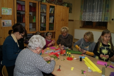 W poniedziałkowe popołudnie w Cieszynie - "Warsztaty - zwinne ręce" . Przedstawiciele Stowarzyszenia na rzecz rozwoju m. Chojnik i Kuźnica Kącka na zaproszenie Pań z Cieszyna i Dorzeca uczestniczyły w warsztatach , przekazując wiedzę związaną z robieniem kwiatów z bibuły .