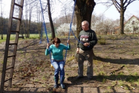 Nośność huśtawki jest ograniczona do 70 kilogramów a wysokość huśtania ogranicza rozsądek. Huśtamy się na własną odpowiedzialność i staramy się jak zwykle urządzenia nie zniszczyć. Powiesili dla nas huśtawkę pani Regina i pan Henryk Kołodziejczykowie i jako pierwsi wypróbowali – przypominając sobie jak to było w dzieciństwie.