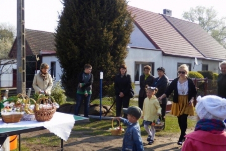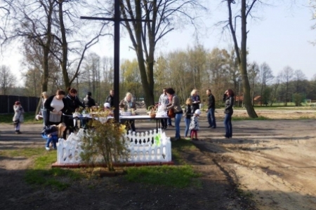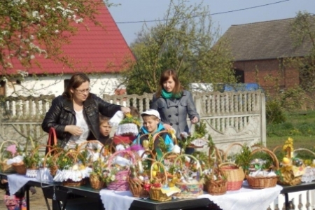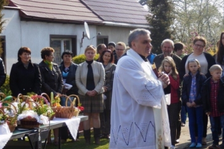 Jeszcze w XIX i na początku XX wieku w Wielką Sobotę ksiądz chodził od domu do domu i święcił pokarmy ustawione na największym stole przykrytym białym obrusem, udekorowanym kwiatami i bukszpanem. Dziś jedzenie nosimy do kościoła w maleńkich koszyczkach, lub koszyczki (tak jak w Rudzie Milickiej) ustawiamy pod krzyżem a ksiądz przyjeżdża poświęcić pokarmy i wodę. Jednak symbolika potraw pozostała ta sama. Szerzej o tym: http://aktywni.barycz.pl/index_duchowo.php?dzial=6&kat=17&art=64