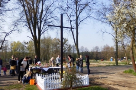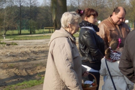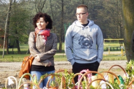W tym roku w Wielką Sobotę przyszła do nas również piękna wiosna ze słońcem i drzewami obsypanymi kwiatami. Najbardziej ze swoich koszyczków pięknie ustrojonych były dumne dzieci. Maja i Jula pierwszy raz samodzielnie niosły każda swój koszyk.