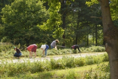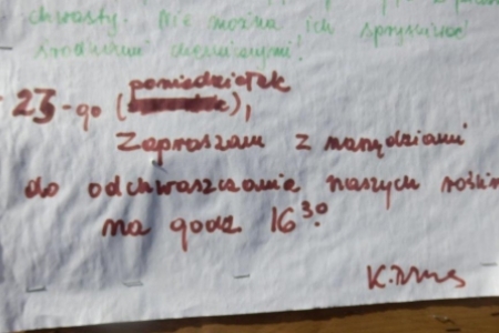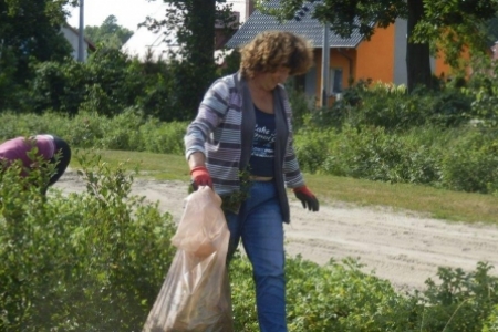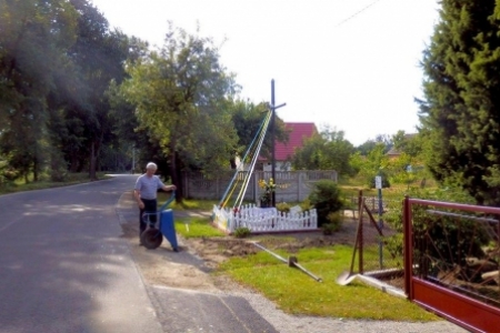 Spotkaliśmy się, zgodnie z zaproszeniem na tablicy, w poniedziałek 23 czerwca na odchwaszczanie naszych róż. Rosną już trzeci rok i w tym roku spodziewaliśmy się, że będą obsypane kwiatami bo pączki zapowiadały urodzaj. Zastaliśmy róże „ogolone” ze wszystkich młodych pędów no i oczywiście kwiatów. Pani Dorota mówi, że jak rano jedzie do pracy to z naszego placu rekreacyjnego wracają sarny ze śniadania. Wydawałoby się, że jest dużo świeżej trawy to róża nie będzie atrakcyjna dla sarny, jednak one chyba też czują „to coś” i wolą śniadanie różane niż z trawy. Różom też się coś należy – odchwaściłyśmy „przystrzyżone” róże a jedyny mężczyzna w tym czasie robił porządki przy krzyżu.