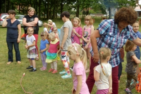 Zabawa dla dzieci zaplanowana przez p. Sołtys i Radę Sołecką jako odkładany z powodu złej pogody Dzień Dziecka odbyła się pod koniec czerwca. Dorośli przygotowali nagrody i słodycze a trzy dziewczynki ze Stawna organizowały zabawy i konkursy dla dzieci. Zajęły się również bardzo modną ostatnio zabawą – malowaniem dziecięcych buź w przeróżne wzory. Powstawały zwierzątka, motylki, a czasem „poważne” makijaże. Jako malarka sprawdziła się również jedna z mam. Każde zwycięstwo w konkursie – stosownie do możliwości dziecka – było nagradzane przez panią Sołtys symboliczną nagrodą. Chłopcy pomimo wielu atrakcji preferowali piłkę. Wszystko odbywało się przy ognisku pod wiatami i na utwardzonym placu oraz ogródku zabaw dla dzieci w Rudzie Milickiej.