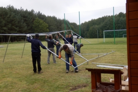 Ze względu na to, że nasza impreza mimo, iż zgłoszona od roku nie została uwzględniona w grafiku lokalnych imprez - cała organizacja spoczywała na ludziach dobrej woli, którzy pożyczyli nam namioty, podłogi, sprzęt, udostępnili transport a przede wszystkim wykonali mnóstwo różnych czynności, często bardzo trudnych i wymagających wysiłku fizycznego i logistyki. Okazało się, że nie tylko mamy wspaniałych sąsiadów z innych wsi ale też nadzwyczaj aktywnych, gotowych do wspólnej pracy mieszkańców.
