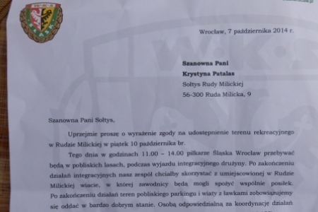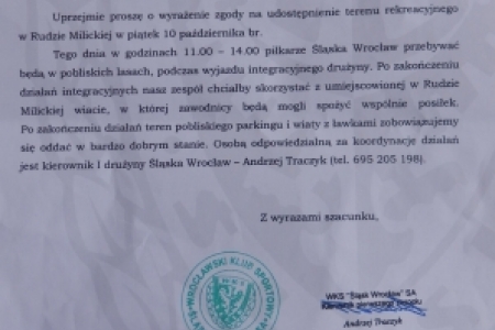 WKS Śląsk polski klub piłkarski z siedzibą we Wrocławiu faktycznie gościliśmy w Rudzie Milickiej w dniu 10 października. Jesteśmy dumni, że dwukrotny mistrz Polski, trzykrotny wicemistrz Polski, dwukrotny zdobywca Pucharu Polski, dwukrotny zdobywca Superpucharu Polski 1987 i 2012 oraz zdobywca Pucharu Ekstraklasy 2009 wybrał Rudę Milicką na spotkanie integracyjne a okolicę na grzybobranie.