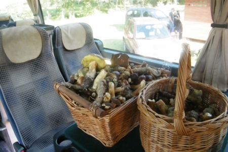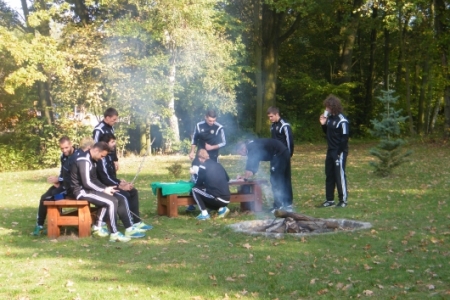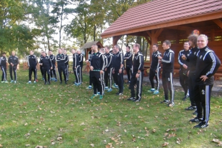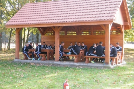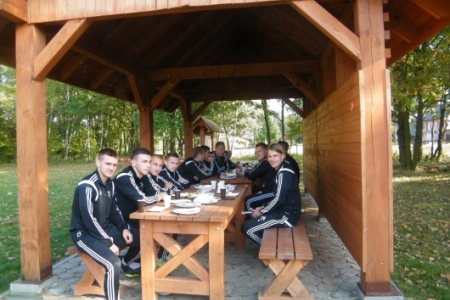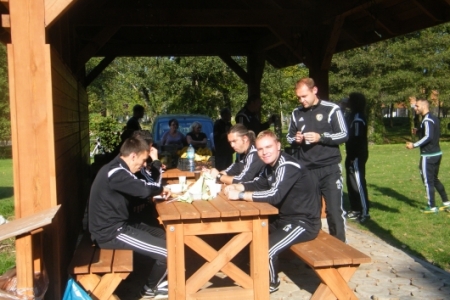 Oczywiście pochwaliliśmy się swoim boiskiem i całym placem rekreacyjnym a goście podziwiali i byli zadowoleni ze swojego pobytu. Żałujemy tylko, że wizyta była w takich godzinach, że nasi zawodnicy z „Ptasiej Krainy” byli w pracy. Ale ponieważ miejsce pod wiatami zyskało duże uznanie a grzyby nadzwyczajnie dopisały to mamy nadzieję, że nie była to ostatnia wizyta bo przecież wiosną u nas też jest pięknie.