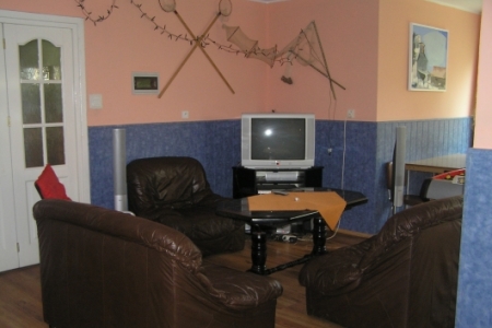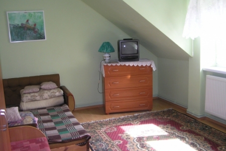 Do dyspozycji gości są: apartament 4-osobowy z aneksem kuchennym i łazienką, dwa pokoje 4-osobowe, jeden pokój 3-osobowy, jeden pokój 2-osobowy, dwie łazienki, aneks kuchenny, duża sala kominkowa ze stołem do ping-ponga i tarczą do rzutek, jadalnia oraz rowery i lornetki.