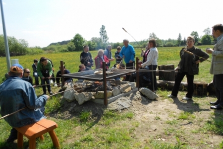 Środowiskowy Dom Samopomocy w Żmigrodzie ośrodek wsparcia pierwsza grupa z projektu " Po zdrowie na szlak Rudobarycki". Było obecnych 28 osób były to osoby niesprawne i inwalidzi. Był Pan na wózku dwie osoby o kulach a reszta z różnymi chorobami,przeważnie wszystkie osoby potrzebowały opieki drugiej osoby. Obecnych było 6 opiekunów.