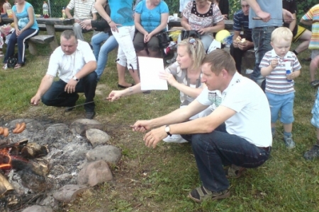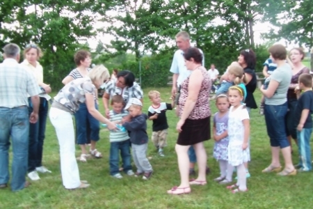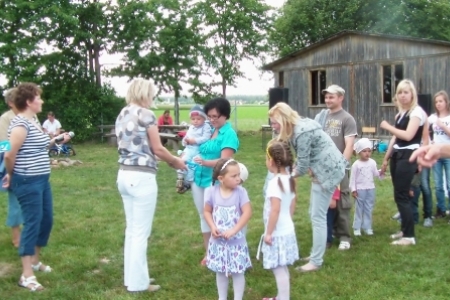 Dla licznie zgromadzonych tatusiów, zorganizowaliśmy konkurs "rzut kaloszem", udział wzięło 10 panów, których 5-ciu otrzymało nagrody rzeczowe, pozostali słodkie upominki. Wszystkie konkurencje były nagrodzone słodkościami, a dzieci były chętne do wszystkich konkurencji. Na zakończenie upiekliśmy kiełbaski na ognisku. Impreza się udała pogoda dopisała a przede wszystkim sponsorzy, którymi byli: p. B. Broda, p. Ż. Błaszczyk, p. I.Curyk, p. A. Patryjas, p. E. Miłkowska, p. H.Kostka, Piekarnia "Smak", Urząd Gminy Cieszków. Bank Spółdzielczy Milicz, Gminne Centrum Kultury. Najbardziej zaangażowana w pozyskanie sponsorów była Iwona Rotman. Sposród zaproszonych gości swoją obecnością zaszczycił nasze dzieci i nas Ks. Proboszcz L. Wilczyński oraz reporter lokalnej prasy p. S. Pałasz.