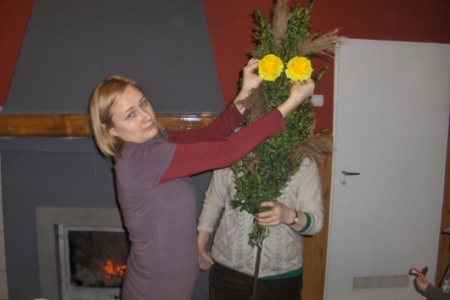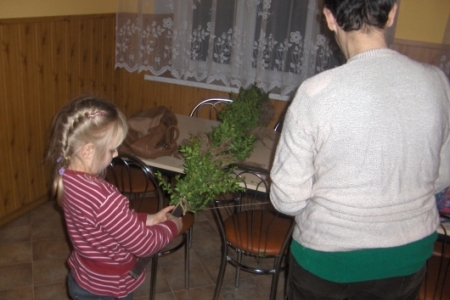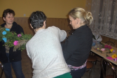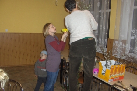 W miniony piątek spotkaliśmy się w naszej świetlicy aby zrobić palmę wielkanocną na konkurs zorganizowany przez GCK Cieszków. Każdy przyniósł co miał i wzięliśmy się do pracy. Przyszly dzieci, młodzież i starsi. Każdy robił to co umiał. Dzieci rysowały laurki i pisanki a starsi robili palmę. Przy pracy mieliśmy możliwośc do porozmawiania o aktualnych sprawach.