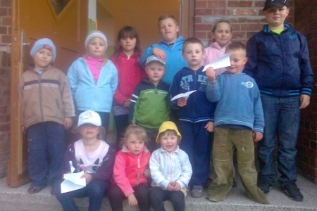 Wczoraj wszystkie chętne dzieci z naszej miejscowości zebrały się w świetlicy żeby narysować prace pt. "Pocztówka z naszej gminy". Dzieciom przygrywały przeboje lat 60-tych tj. "Zielone wzgórza nad Soliną", "Pod papugami" czy "Dziwny jest ten świat". Bardzo spodobała się ta muzyka. Widać więc, że stare dobre przeboje nie starzeją się nigdy. Dorośli zadbali o podniebienie milusuńskich. Były napoje i pop corn.