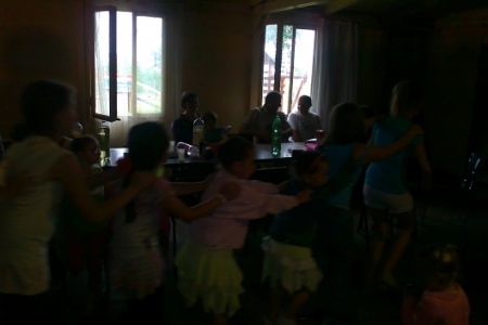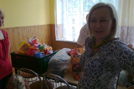 Po dwóch godzinach nad nasze boisko wyszły chmury i spadł deszcz, ale to nie zespsuło nastrojów wśród dzieci. Impreza w ciągu kilku minut przeniosła się do "baraku" gdzie wszyscy bez problemu się pomiescili. Miejsca było na tyle dużo, że dzieci mogły spokojnie biegać i bawić się w środku. Wszystkie dzieci losowały niespodzianki. Wśród nich było dużo skakanek, hula-hopy, chipszy, kredki, pisaki , notesiki, gadżety DOLINY BARYCZY, gadżety EURO KIBICóW, drobne zadawki.