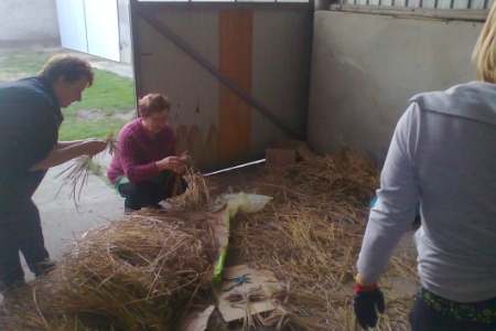 Kilka pań z naszej miejscowości spotykało się kilka dni aby stworzyć wieniec na dożynki. Szybko i sprawnie palce naszych pań dobierały kosmyki zbóż i pletły ten nietypowy wieniec....
