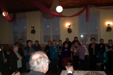 Imprezę dla Pań przygotowała Rada Sołecka wraz z sołtysem Zygmuntem Łozińskim. Na uroczystą imprezę przybył czterdzieści dziewięć osób. Uroczystość otworzył sołtys, składając Paniom z okazji Święta Kobiet życzenia zdrowia, pociechy z dzieci wiele słodyczy oraz o zaproponował odśpiewania 100 lat. Każda z Pań została obdarowana piękna różą. Toast został wzniesiony lampką szampana za pomyślność wszystkich Pań. Po życzeniach i toaście panie zasiadły za pięknie zastawionym stołem uginającym się od smakołyków takich jak, smaczne sałatki, pyszne mięsa, kiełbasy, rybki oraz najróżniejszych ciast. W miłej atmosferze panie bawiły się do późnych godzin wieczornych