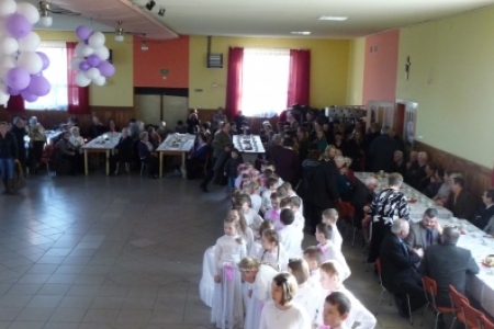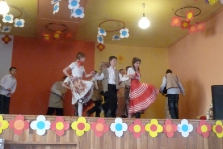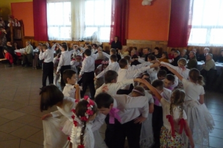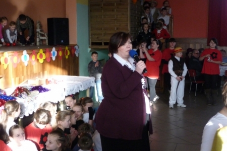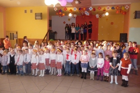 Goście aktywnie uczestniczyli w przedstawieniach muzycznych, włączając się w śpiew takich znanych melodii jak: „SERDUSZKO PUKA”, czy „SERCA DWA”. Te przepiękne utwory wprawiły zgromadzonych w dobry humor, na twarzach gościł uśmiech. Pierwszacy zaprezentowali także tańce ludowe: wielkopolskie: MARYNECZKĘ oraz KŁANIANEGO oraz rzeszowski taniec HURRA POLKA. Młodzież przygotowała nowoczesne układy taneczne. Na zakończenie wspólnie odśpiewano „Sto lat” dla wszystkich zgromadzonych seniorów, a następnie wręczono przygotowane wcześniej przez uczniów „Laurki”. Po części artystycznej gości zaproszono na skromny poczęstunek.
