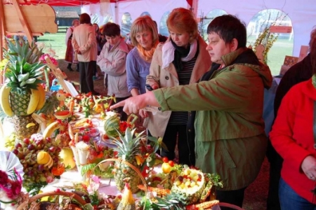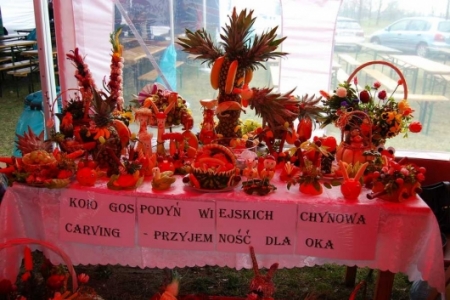 Po pokazie osoby zainteresowane przepięknymi dziełami naszych pań z Koła Gospodyń Wiejskich otrzymały w prezencie wykrojone rzeźby z warzyw i owoców. Trzeba przyznać, iż nasze panie z KGW tworzą prawdziwe „dzieła sztuki”, obok których nie można przejść obojętnie. Członkinie KGW po raz kolejny stanęły na wysokości zadania, są mistrzyniami w dziedzinie carvingu – wystarczy spojrzeć na kilka zdjęć zamieszczonych w galerii, by się o tym przekonać.