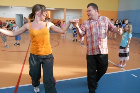 Serdecznie zapraszam na zajęcia, na których zobaczyć można nie tylko to jak tańczy się Zumbę, ale również taniec towarzyski. Podczas trwającej przerwy w zajęciach w dniu 10.05.2012 r. jedna z piosenek tak bardzo wpadła w ucho jednemu z rodziców, że zaprosił mnie do tańca Cha-cha. Kto zdobył się na taką odwagę? Zobaczcie sami;)