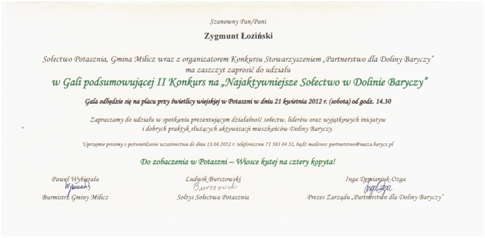 W Gali podsumowującej II Konkurs na „Najaktywniejsze Sołectwo w Dolinie Baryczy”