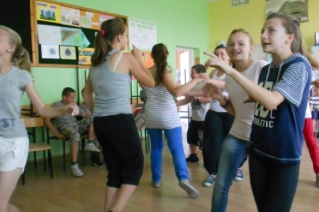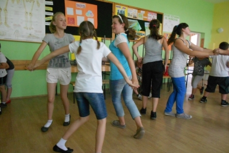 Dzieci i młodzież uczestniczyły w karaoke i przy tym świetnie się bawiły, tańcząc w parach czy też w kole. Ci najmłodsi i zarazem bardzo odważni zaprezentowali tańce ludowe. Starsze dziewczynki przewodniczyły reszcie grupy, przedstawiając kroki ZUMBY (popularnej formy tańca), która w naszej miejscowości posiada liczne grono swoich miłośników.
