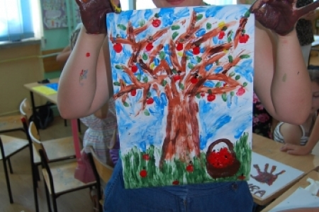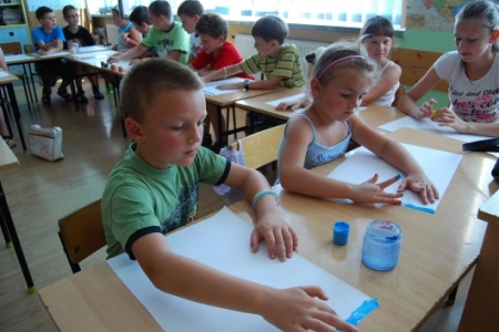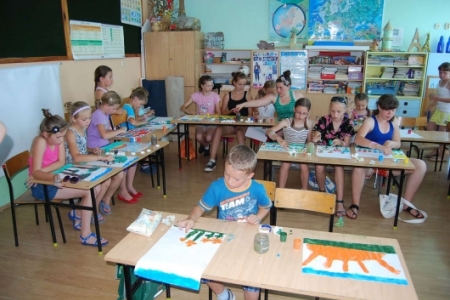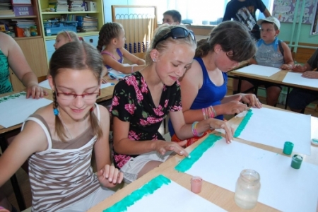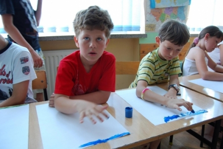 6. lipca był dniem podczas którego dzieci uczestniczyły w zajęciach plastycznych, malując dłońmi pejzaże i przeróżne malownicze motywy.
