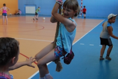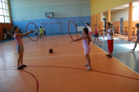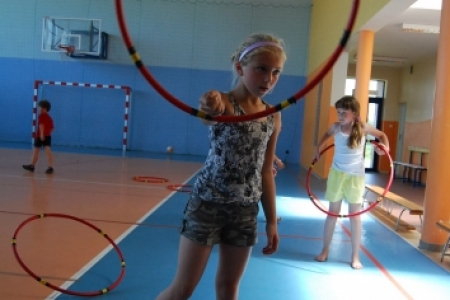 Po posiłku dzieci brały udział w grach i zabawach na sali gimnastycznej przy Zespole Szkół w Chynowej.