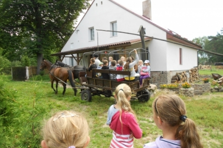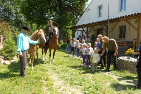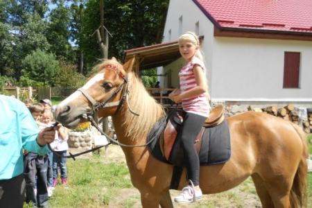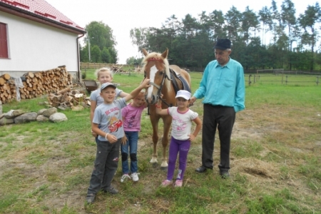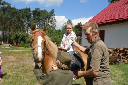 W dzień ósmy półkolonii tj. 12 lipca br. dzieci wymaszerowały spod Zespołu Szkół w Chynowej na Leśniczówkę Klady. Tam spotkały się z leśniczym Jerzym Kątnym, który zapoznał dzieci z tajnikami przyrody. Dzień ten zapewne dzieciom na długo pozostanie w pamięci, gdyż był obfity w liczne atrakcje konne, w postaci przejażdżki bryczką, przejażdżki konnej w siodle czy też strzelania z łuku i spaceru po lesie.