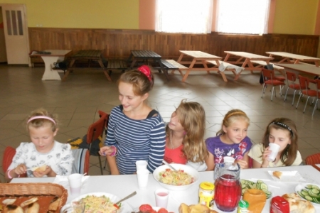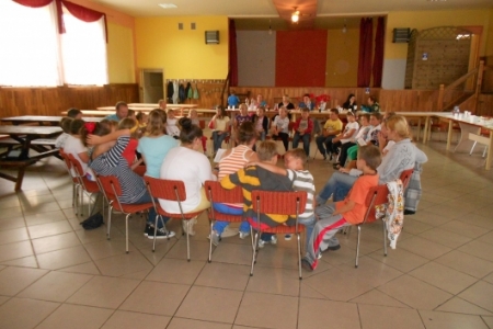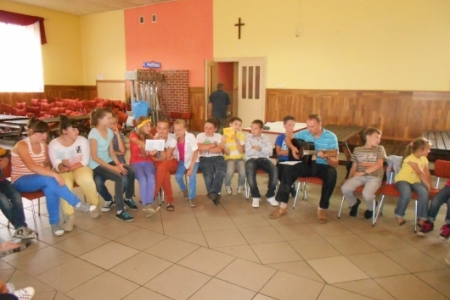 Uwieńczeniem wypoczynku letniego w postaci półkolonii dla dzieci i młodzieży było spotkanie, podczas którego nastąpiło pieczenie kiełbasek, wspólne śpiewanie piosenek przy akompaniamencie gitary, tańce i rozmowy.