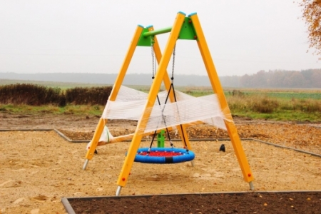 Na placu zabaw dla dzieci z urzadzeniami do rekreacji dla dorosłych, za wiatrakiem Bronisław" i Chata Młynarza, zainstalowano już większość urządzeń.