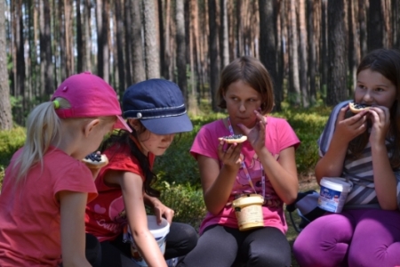 Pogoda sprzyjała wędrówce po lesie, wszystkie dzieci były zachwycone tamtejszą ciszą, zielenią oraz skarbami natury jakimi są jagody . Trochę trzeba było się na chodzić, żeby nazbierać pełne wiaderka jagód i najeść się do syta pysznymi owocami . Wszyscy ochoczo zbierali dorodne owoce wiedząc, że po powrocie zostaną wykorzystane do przygotowania deserów oraz kompotów. Była to owocna wyprawa do lasu po dary natury. Chętnych na kolejną wędrówkę nie brakuje.