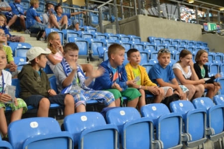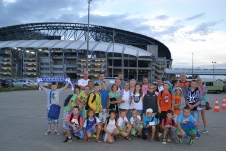 W upalną niedzielę 3 sierpnia 2014r. grupa dzieci i młodzieży wraz z opiekunami i trenerem Maciejem Kubiakiem wyjechała na mecz Lech Poznań- Wisła Kraków na Stadion Miejski w Poznaniu.