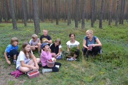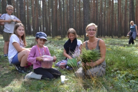 Uczestniczy projektu „Smak lasu zamknięty w słoiku” tym razem wybrali się do lasu w poszukiwaniu borówek. Po kilku godzinach wędrówki po leśnym runie zebrała się spora ilość owoców. Oprócz borówek w koszykach znalazły się również grzyby. Dzieciaki okazały się najlepszymi zbieraczami leśnych skarbów.Poznały rodzaje i budowę grzybów oraz zagrożenie związane z ich zbieraniem.