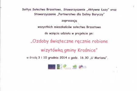 10 grudnia - warsztaty - ozdoby bożonarodzeniowe - dla mieszkańców sołectwa Brzostowo przeprowadzą członkinie Stowarzyszenia "Aktywne Łazy"