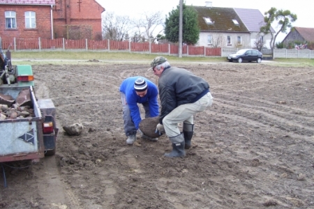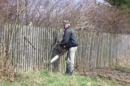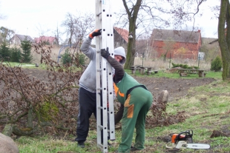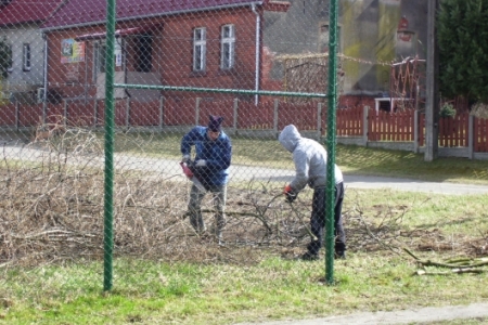 W sobotę mimo niesprzyjającej pogody zostały rozpoczęte prace na boisku.Jesienią boisko zostało zaorane i z nastaniem wiosny wznawiamy prace.Nasi panowie ostro wzięli się do pracy.Poszły w ruch piły które wycinały krzaki i zbędne gałęzie.Postawili tablicę inforamcyjną koło świetlicy, przewieźli podłogę i wyzbierali kamienie.