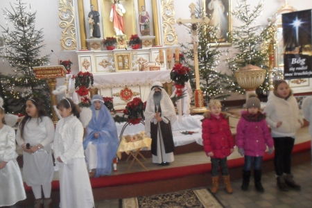 6.01.2015r. w kościele w Pakosławsku dzieci z miejscowej podstawówki przedstawiły Jasełka Bożonarodzeniowe. Występ dzieci został nagrodzony gromkimi brawami, a pani Wujciów obdarowała aktorów słodkościami. Po raz kolejny mogliśmy się przekonać jak utalentowane są dzieci w naszej szkole. Talent wokalny Bartka Rogala i Tobiasza Dopieralskiego, wspaniała dykcja Igora Sabatowicza, wielki zapał twórczy wszystkich dzieci. Gratulujemy rodzicom pomysłów na stroje małych aktorów. Dzieci przygotowali: wychowawczyni klasy I Dorota Rura i Ks. Proboszcz Krzysztof Tomczak.