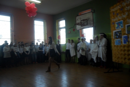 Pani Barbara Dwojak, nauczycielka podstawówki wraz z uczniami starszych klas ciekawy program artystyczny opowiadający o wszechświecie.